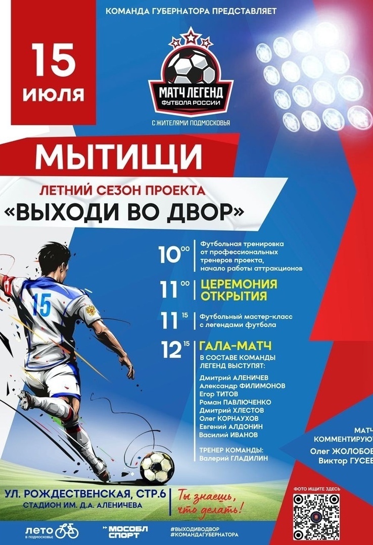Седьмая игра летнего сезона проекта «Выходи во двор» прошла на стадионе имени Дмитрия Аленичева – капитана команды «Легенды футбола».